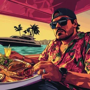 «MEME PEPE in GTA art style — Enjoying picnic on the yacht — in t...»