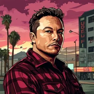 «Elon Musk in GTA art style — ketamine — in the style of a Grand...»