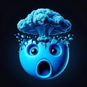 «A hyper-stylized emoji illustration depicting a cyan blue shock...»