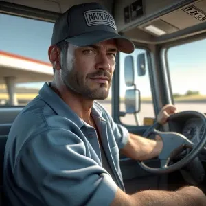 «Naiketrucker man in the rest area showing off his d»
