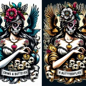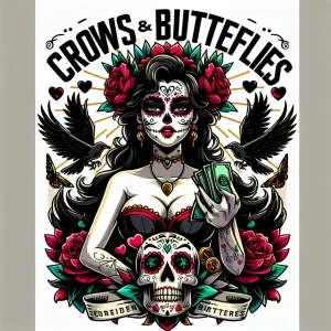 «Create a design featuring the phrase "Crows & Butterflies appare...»