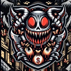 «Create a bold horror themed cartoon smiley ghostface mascot logo...»