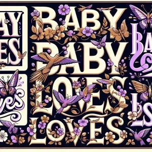 «Create a design featuring the phrase "baby loves" in various cal...»