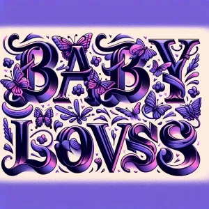 «Create a design featuring the phrase "baby loves" in calligraphi...»