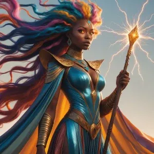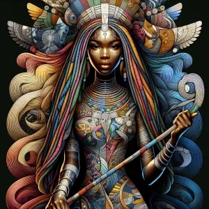 «Mythweaver A Nigerian Queen stands tall, her long hair a wild ta...»