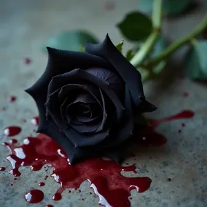 «Hyperrealistic black rose very detailed sharp imagery with blood...»
