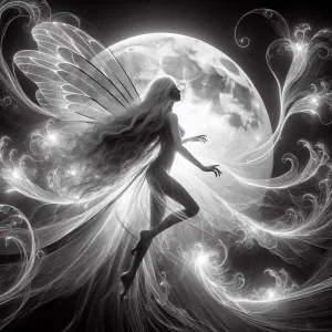 «A ethereal wisp of a nymph dances amongst moonlit tendrils, her...»