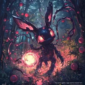 «A surreal vertical artwork of a zombified Umbreon mid-evolution...»
