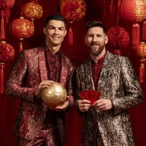 «Cristiano Ronaldo dan Lionel Messi berdiri berdampingan, foto be...»