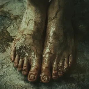 «Photographic realistic foot with a female human exaggerated cry...»