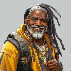 «Create an image of a whimsical, cartoon-style Black male charact...»