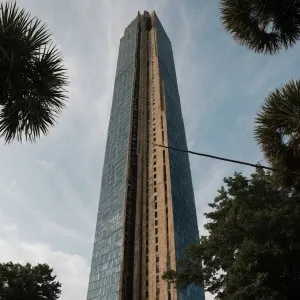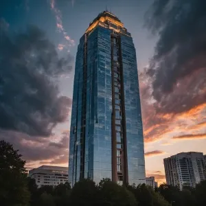 «Create a picture of a 250 meter tall skyscraper set in the skyli...»