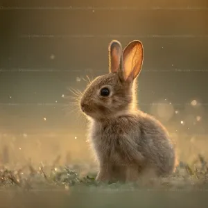 «“ultra-realistic baby rabbit sitting in soft meadow grass, warm...»