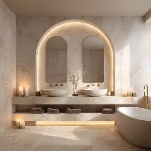 «Create a luxurious bathroom with design elements inspired by des...»