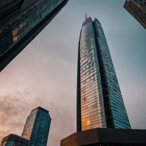 «Create a picture of a 250 meter tall skyscraper in the skyline o...»