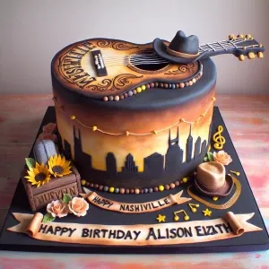 «Create a Nashville-inspired ultra-realistic cake with the follow...»