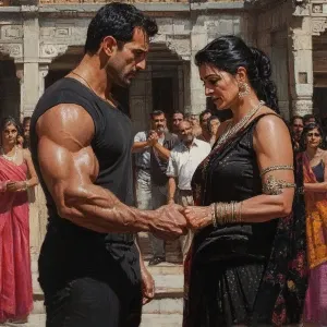 «Realism 80% mixed with photo20%,a muscular sweaty man walking w...»