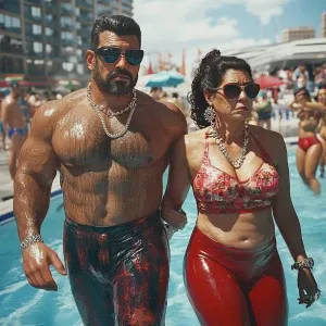 «Photo, hyperrealism,a bodybuilder man ,walking with his 50 years...»