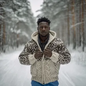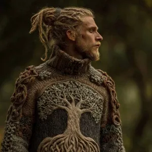 «This image shows a man with a beard blonde hair. wearing an int...»