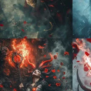 «**Full-body shot of a woman with eyes in her chest, surrounded b...»