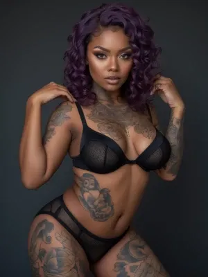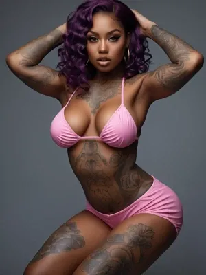«redbone female with tattoos laying across the bed wearing a G-st...»