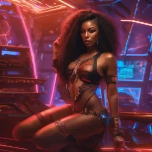 «Brown skin redbone female posing in doggystyle position wearing...»