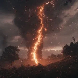 «Terrible thunderstorm with lightning and rain and a tornado, int...»