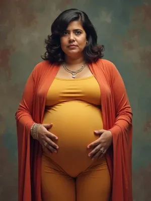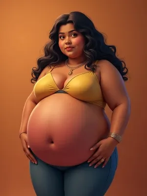 «An overweight Kamala Khan depicted with a highly exaggerated pre...»