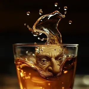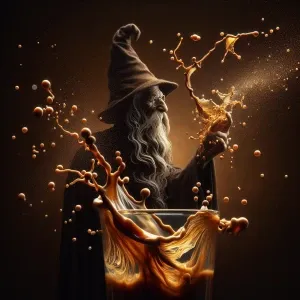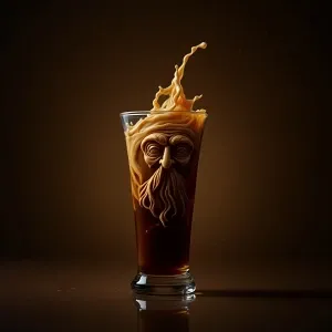 «Macro photography. A single drop of coffee forms the face of a w...»