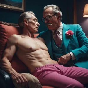 «Describe a stylish, mature man exuding confidence while displayi...»