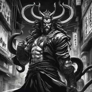 «In the shadows of a dimly lit alleyway, a zealously sinister gor...»