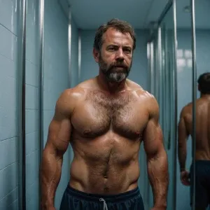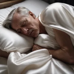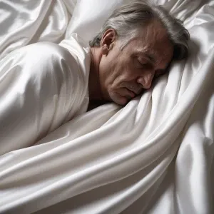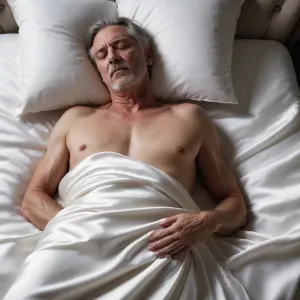 «A detailed image of my nakefather asleep, with a thin white sati...»