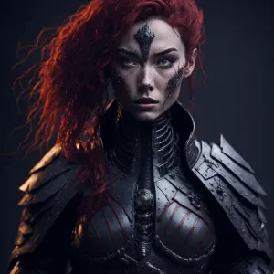«Beautiful redhead samurai android human hybrid wide angle»