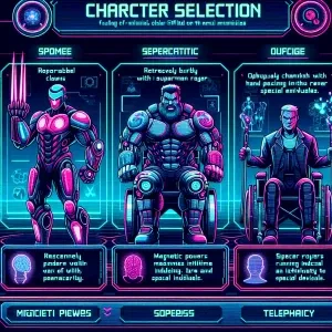 «Create a character selection screen graphic for a video game, de...»