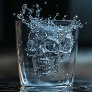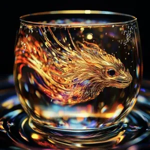«Macro photography. A drop of shimmering, iridescent liquid forms...»