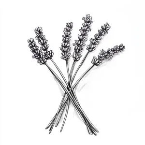 «Pen and ink drawing of a few twigs of lavender flowers that lay...»
