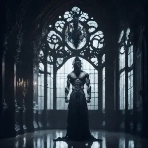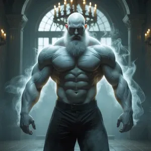 «Create an image of a supernatural being resembling a bodybuilder...»