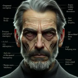 «Create a hyper-realistic image of a repugnant man, personifying...»