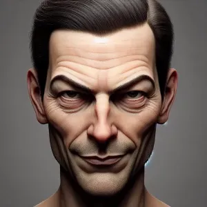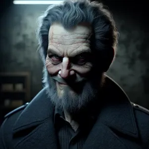«Create a hyper-realistic portrait of a man with a sinister expre...»