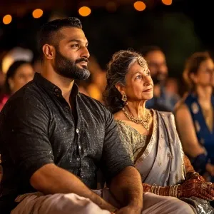 «Realism.A sweaty man walking with his mother in law with noseri...»