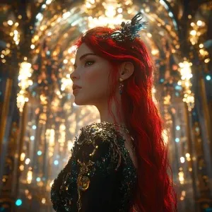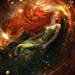 «A celestial, high-angle composition. A radiant, fiery-haired God...»