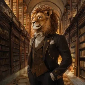 «Digital painting. An anthropomorphic lion, dressed in a tailored...»