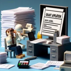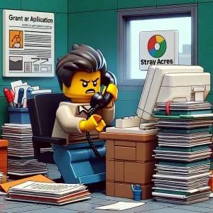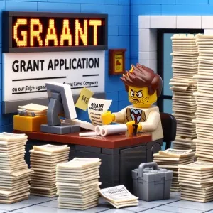 «A Lego minifigure, surrounded by paperwork and a computer, appea...»