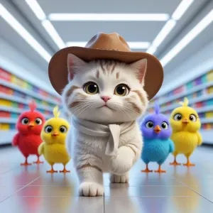 «A highly detailed, colorful, and exaggerated 3D render in a Pixa...»