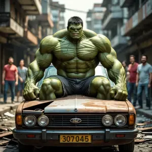«Photorealistic giant cybernetic warrior in heavy power armor, bl...»