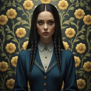 «Oil painting of Ludwig’s bedroom showing detailed gothic woodwor...»