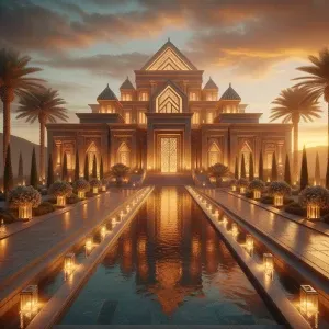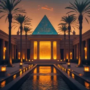 «Front of the Mansion – The Golden Pyramid Entrance: An awe-inspi...»