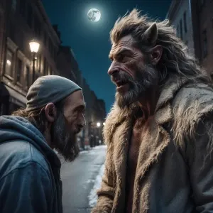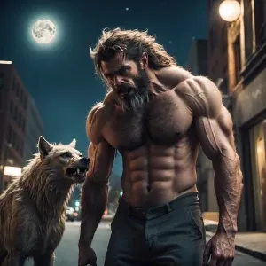 «Muscleneikehairy lycan guy showing offA homeless man, looking at...»