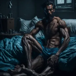 «Homelessingoodshape guy showing off and bulging in the bed hairy...»