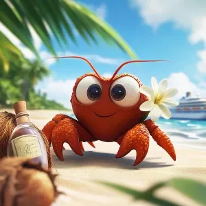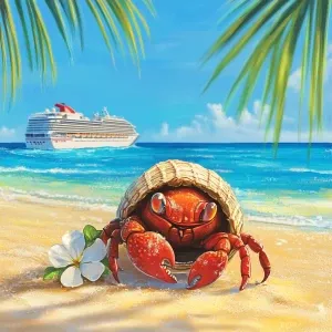 «Create a charming cartoon image of a female red hermit crab, coc...»